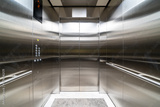modern elevator with stainless steel walls, control buttons, and a digital floor display, clean and sleek