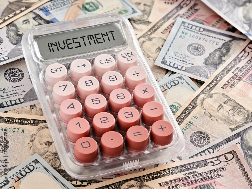 Calculator Showing Investment on Display Lying on United States Dollar Banknotes