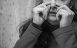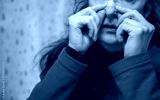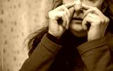 Woman with a nasal strip in the nose apply. Close view of a nasal strip in the nose