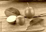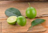 Fresh lime with slices on wooden table