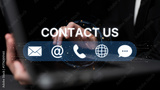 UI concept for contact us section showing icons for email, web, phone, and message. Contact and support icons help streamline business communication and improve customer contact experience. Spline