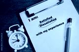 Concept of customer feedback write on clipboard isolated on Wooden Table.