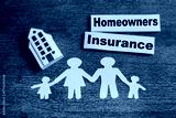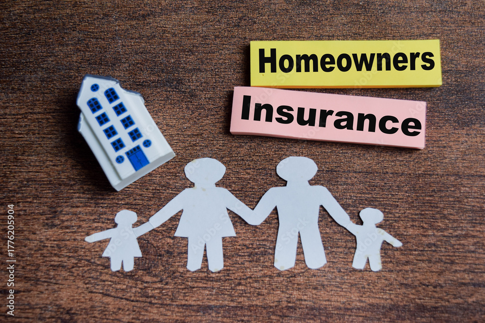 Concept of homeowners insurance write on sticky notes isolated on Wooden Table.