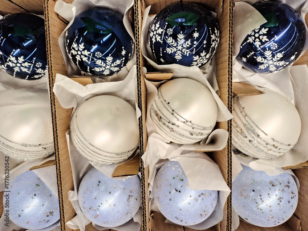 Christmas decorations, colorful glass baubles for the Christmas tree.