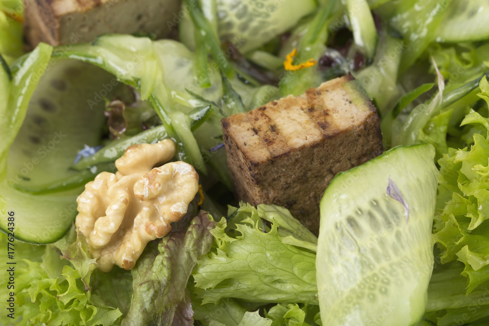 Fresh salad with walnuts and tofu cheese.