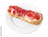 Delicious eclair with strawberry jam.