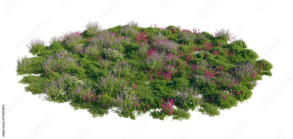 Field Ground with Purple Flowers isolated png on a transparent background premium grass pile cutout
