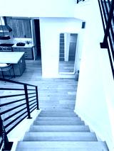 Modern staircase interior with railing and wooden steps