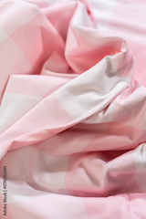 Crumpled Pink Gingham Fabric Texture Close-Up