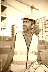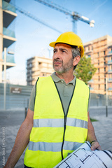 Construction worker planning project at building site