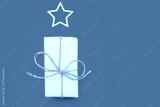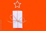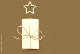 Collection of Christmas objects - gift box, frame, eve fir, dried orange, pine cone, star. New Year and winter minimal holiday frame composition. Flat lay, top view, place for text.