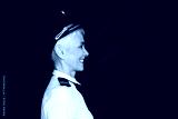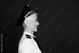 Photo portrait of attractive senior woman passenger plane captain profile dressed aviator uniform isolated on dark blue color background