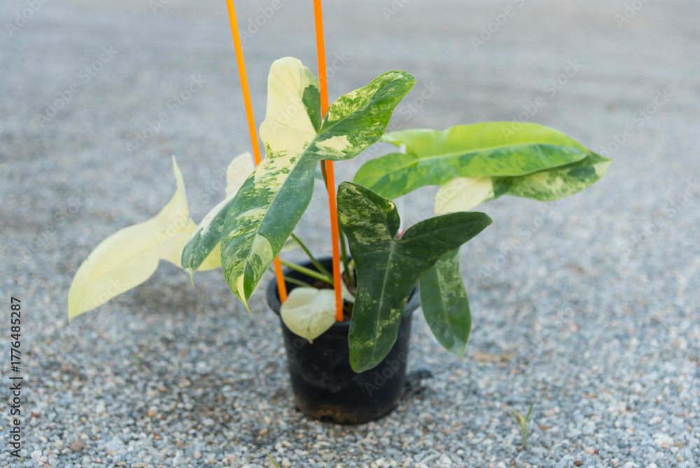 Closeup to New hybrid plant Philodendron billietiae x florida beautyin the pot
