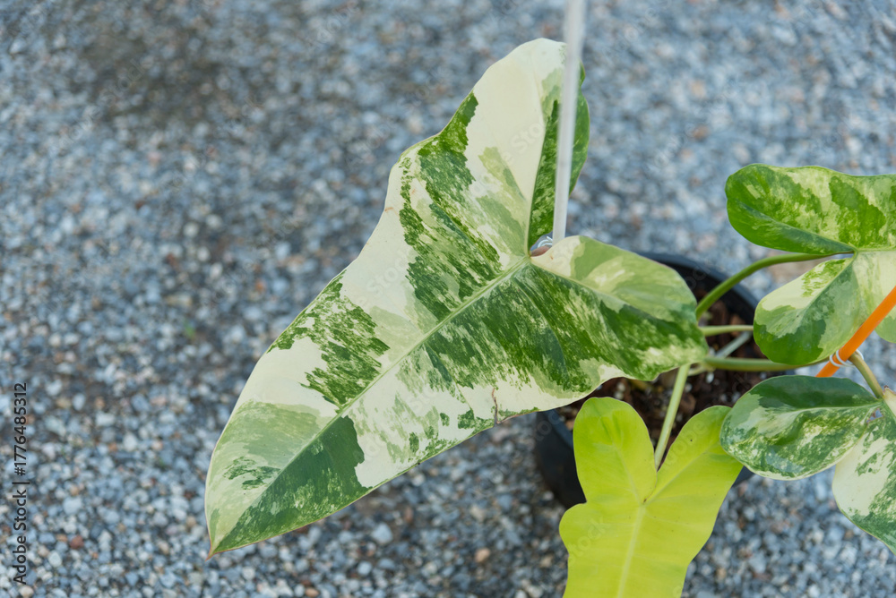 Closeup to New hybrid plant Philodendron billietiae x florida beautyin the pot
