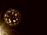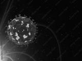 A high-resolution 3D rendering of a large, abstract virus particle set against a dark background.