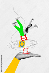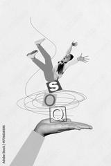 Banner sketch 3d image banner collage of human hand hold kidnapping girl marionette exploitation puppet control imprisonment
