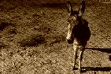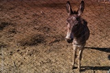 Donkey standing by the fence in a field during daylight in a rural setting