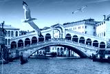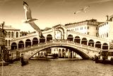 Sunny view of medieval Rialto Bridge over Grand Canal, Venice, Italy