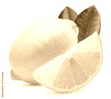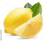 lemon with slice and leaves isolated on white background. Clipping path