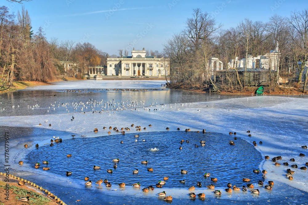 Łazienki Park, or the Royal Baths Park the largest park in Warsaw with Palace on the Isle, Poland