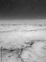 Vast expanse of fluffy clouds under a clear blue sky at high altitude during midday flight