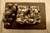 italian authentic food focaccia bread with tomatoes and basil in a black plate