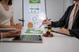 Lawyer explaining esg sustainability guidelines to people in meeting