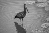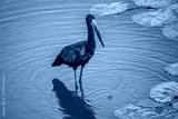 Open billed stork wading among th lillies