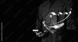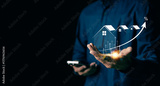 Real estate investment concept,Buy and sell houses and real estate online on a virtual screen. real estate market.Buy, own, and sell properties for profit.
