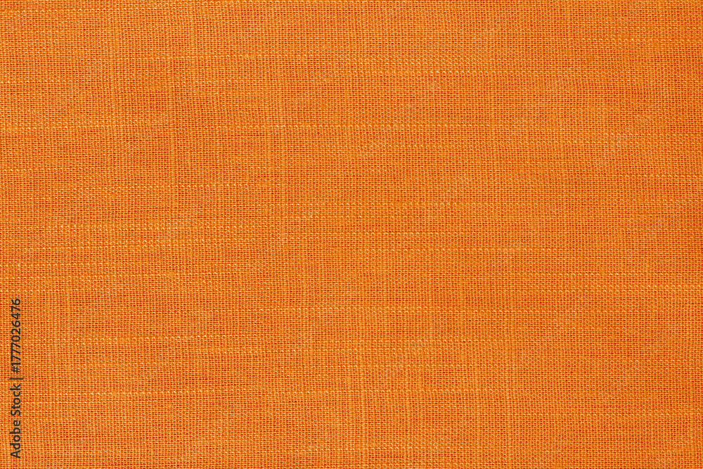 Orange linen fabric cloth texture for background, natural textile pattern.