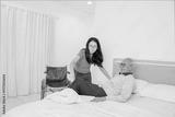 Young Female Caregiver Helping Elderly Man Lie Down in Bed with Gentle Assistance