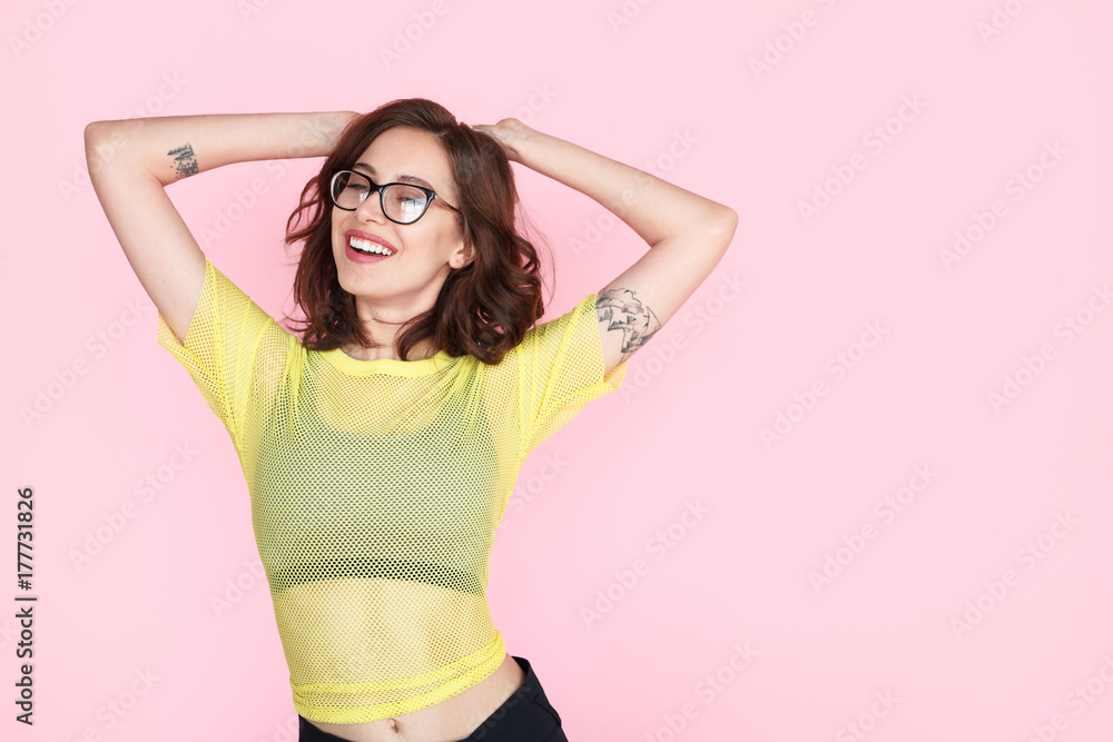 Brunette girl in glasses dancing