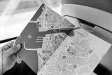 A close-up view inside a coach bus shows a female hand holding a detailed map of Porto's urban and coastal areas, illustrating travel planning on the go. Travel Europe concept.