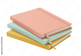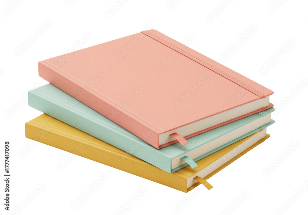 Isolated stack of notebooks in various colors including pink, blue and yellow colors