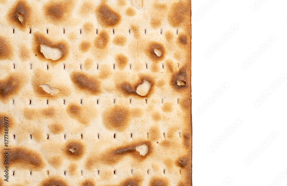 Matzo jewish traditional Passover bread. Pesach celebration symbol. Matzah, matzo, matzos. Close-up.