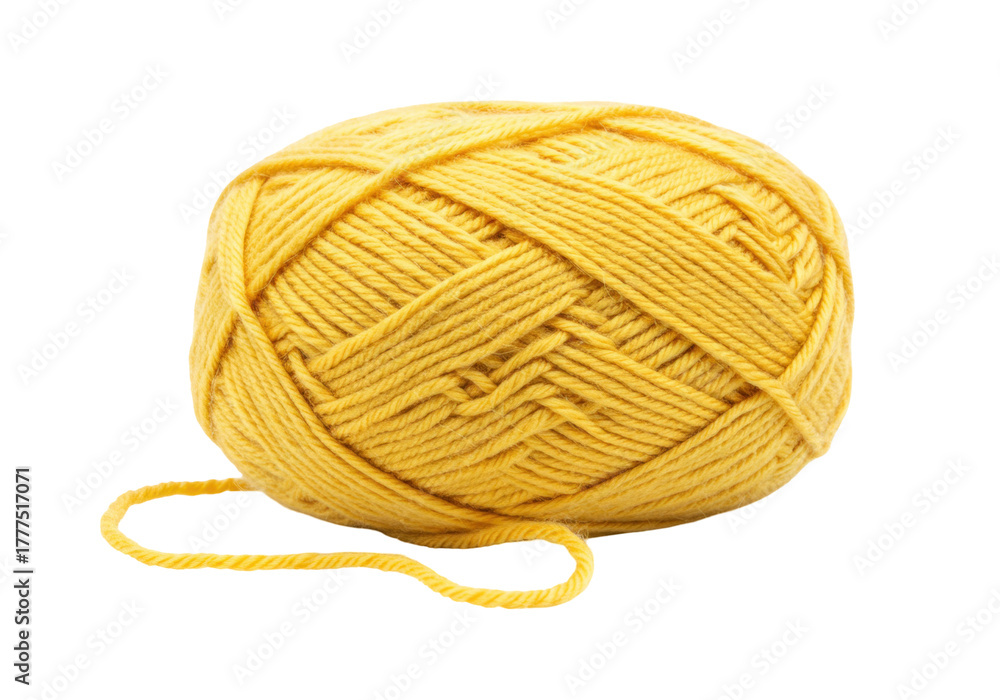 Isolated ball of golden yellow yarn for craft project, knitting or crocheting, vibrant color