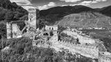 Austria tourism, Danube valley . scenic medieval castle in Spitz village located on the hill , Ruine Hinterhaus. enchanting Wachau region.