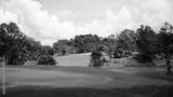 Green grass and woods on a golf field. View of Golf Course with beautiful putting green.