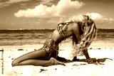 Luxury woman in sexy golden bikini and jewelry posing on tropical beach with turquoise ocean, glamour fashion and summer lifestyle concept on Mauritius island