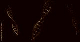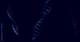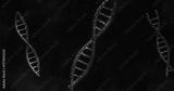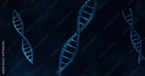 Floating central blue DNA double helix twisting in molecular environment, with smaller strands