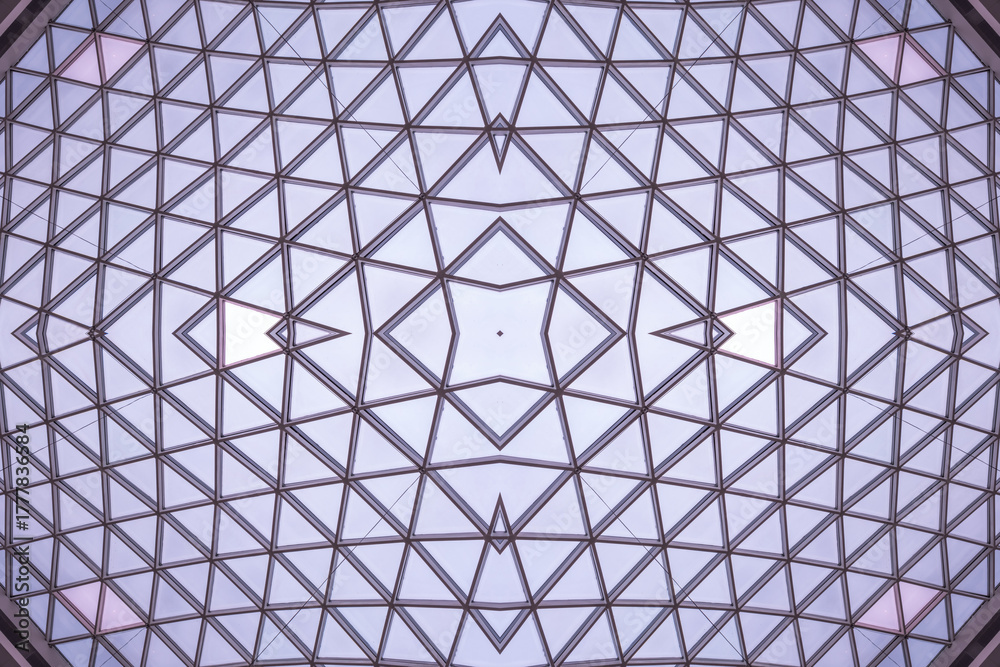 Architectural glass structure with a geometric triangular pattern, Steel glass roof wall construction transparent window with support system