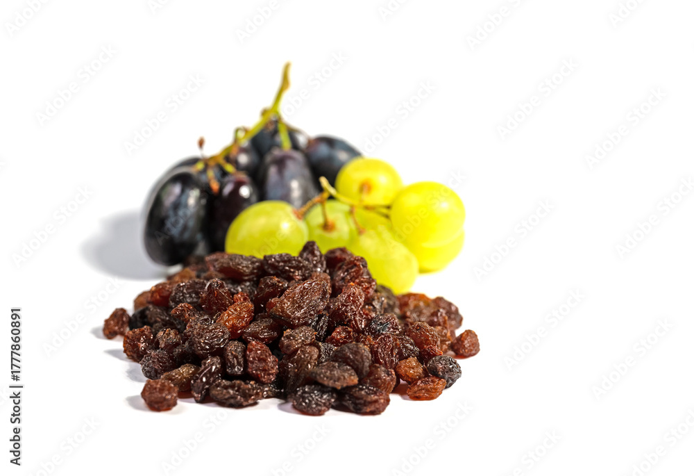 Getrocknete Weinbeeren vor weißem Hintergrund