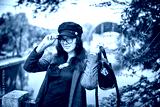 Beautiful girl in autumn in the park.