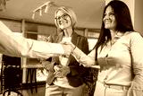 Man and woman are shaking hands in office. Collaborative teamwork. Business professionals