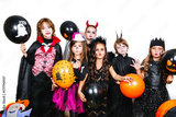 Happy brothers and two sisters on Halloween party