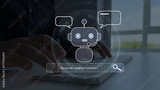 AI Agent chat interface.Interaction with the Ai assistant to solve some tasks more easily.Online support Chatbot conversation.Virtual assistant, artificial intelligence software automation technology.