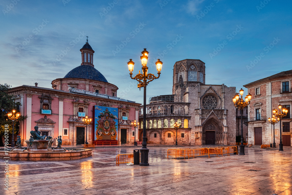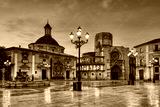 Placa de la Verge with Turia Fountain and Porta de l'Almoina and Basilica, Valencia