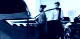 Modern car dealership interior featuring sleek vehicle design, illuminated taillights, and customers engaging in car sales discussions, showcasing a vibrant automotive sales environment