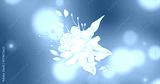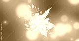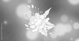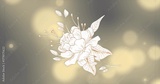 Floating white line-art floral illustration drifting over gradient canvas, with bokeh light effects