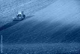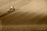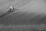 Beautiful autumn landscape with working tractor in south moravia, Czech Republic. Agriculture concept.